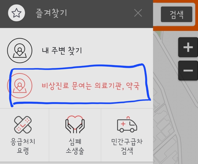 2. 문 여는 병원, 약국, 응급실 찾기 검색