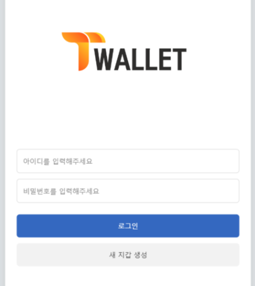상담원의 개인정보를 입력하라는 답변에 저는 혹시 홈페이지가 있냐고 제가 직접 들어가 확인해 보겠다고 했어요. 상담원이 알려준 T월렛 홈페이지는 http://twallet-kr.com라는 주소인데요. 접속해 보니 역시나 홈페이지를 볼 수 없고 로그인먼저 하래요. 로그인을 하려면 회원가입을 해야 하고 가입하기 위해 개인정보를 입력해야겠죠. 티월렛은 회원가입을 새지갑생성이라고 썼네요.