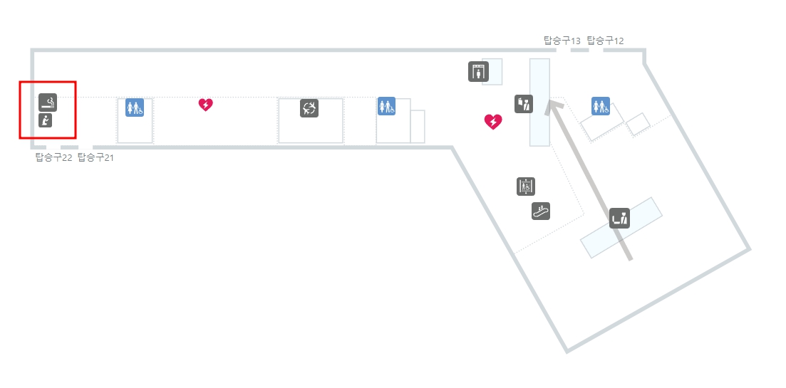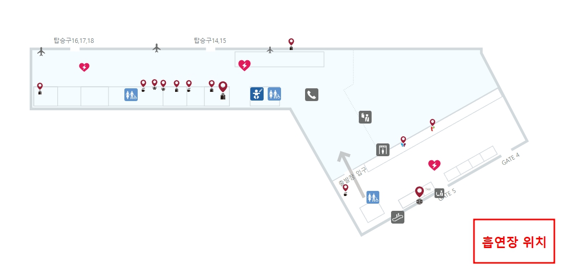 - 보안검색대 : 검색대 옆 흡연부스 위치