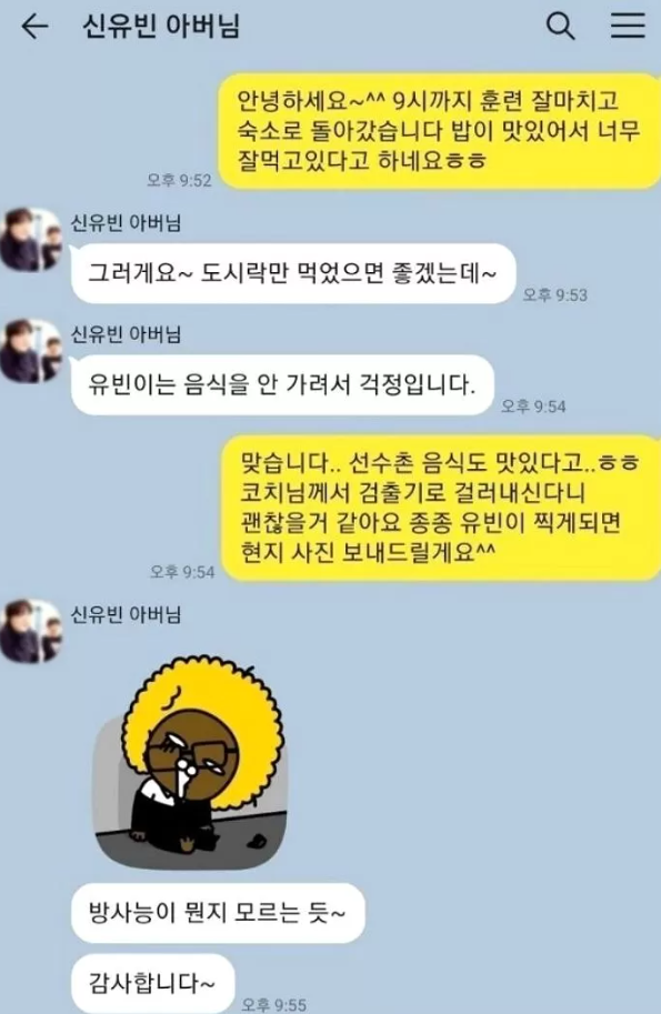 신유빈 아버지 카톡