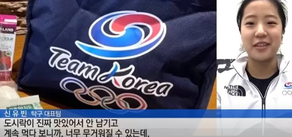 한편 다른 인터뷰에서는 신유빈 선수의 먹성을 보여주는 듯 도시락 관련 얘기가 나왔는데, 신유빈 선수가 "선수촌에서 나오는 도시락이 맛있어서 남기지도 않고 다 먹고 있다, 조금만 먹으라고 하시는 분도 있다" 라고 이야기했습니다. 이 인터뷰와 신유빈 아빠 카톡을 본 사람들은 '걱정하는 아버지 모습 감동이다', '신유빈 잘 먹어서 너무 귀엽다', '한창 잘 먹을 나이다' 등의 반응을 보였습니다.