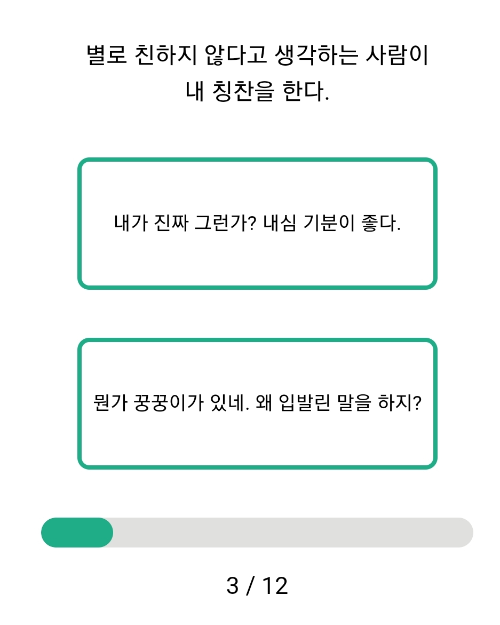 내가 직장상사라면 어떤 타입이 될지 궁금합니다. 총 12문항이 나오더라고요. 같이해봐요. 시작하겠습니다!