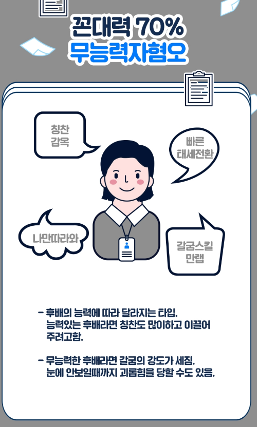 헉 꼰대력 70퍼센트! 갈굼 같은 거 안 하는데 생각보다 저에게 꼰대지수가 많군요. 이런이런 70%는 너무하다.